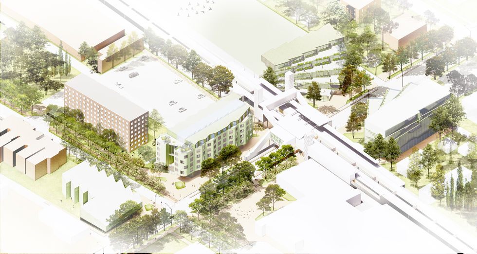 Lake & Kedzie is a mixed-use, transit-oriented development and landscape framework proposed as part of Chicago’s Invest South/West initiative. Located at the intersection of Lake Street and Kedzie Avenue—directly adjacent to the Kedzie Green Line Station and near Garfield Park—the project positions housing, commerce, and landscape as interdependent civic infrastructure.